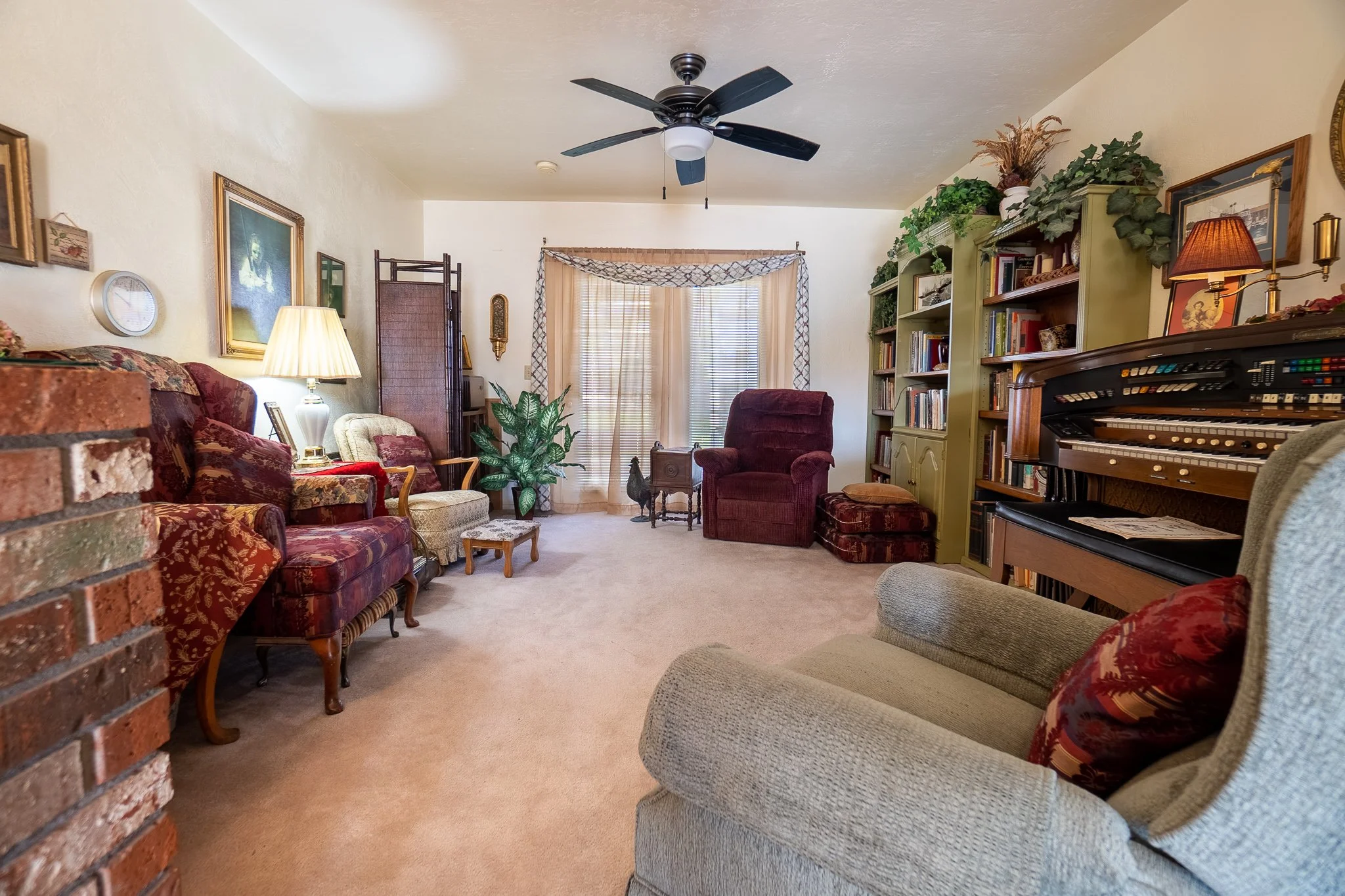 In the kitchen you will find plenty of cabinet and counter space, with an additional island that has high-seating for two and a cozy dining area next to a brick wall fireplace.